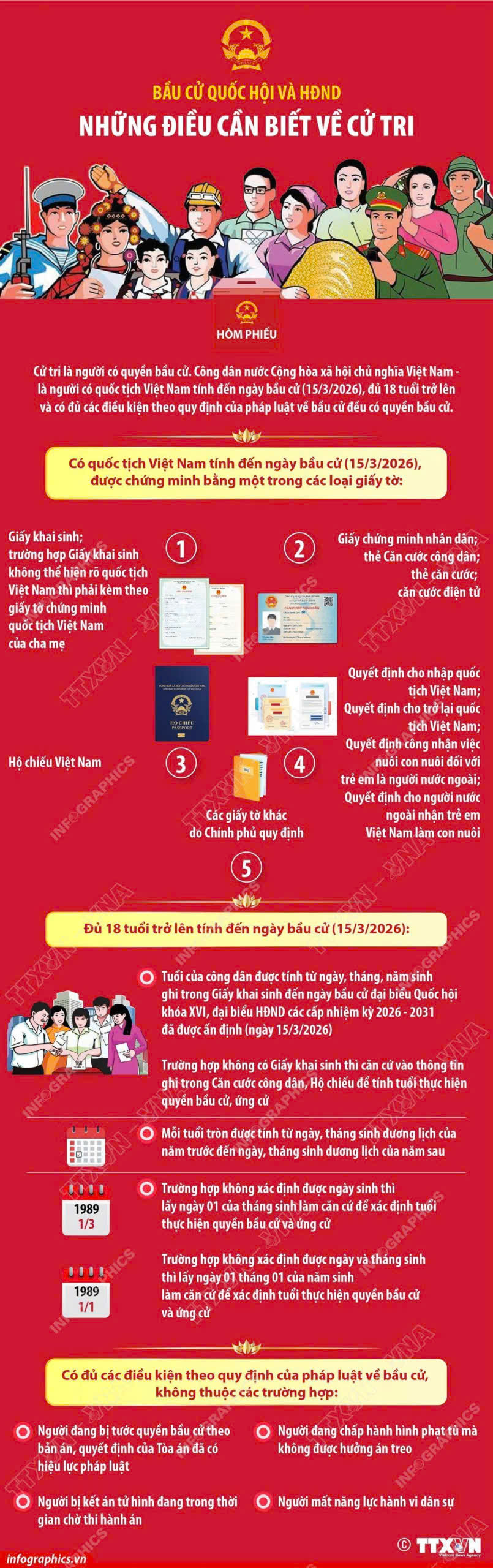 Cử tri là người có quyền bầu cử. Công dân nước Cộng hòa xã hội chủ nghĩa Việt Nam - là người có quốc tịch Việt Nam tính đến ngày bầu cử (15/3/2026), đủ 18 tuổi trở lên và có đủ các điều kiện theo quy định của pháp luật về bầu cử đều có quyền bầu cử.
